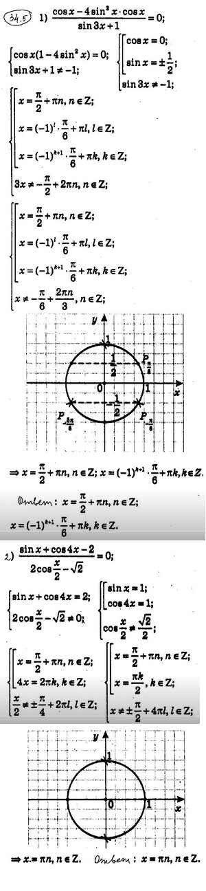 Готовая домашняя работа с ответами по Алгебре за 10 класс Мерзляк, Номировский, Поляков Учебник Алгоритм успеха Углубленный уровень Вентана-граф 2019 ФГОС - §34. О равносильных переходах при решении тригонометрических уравнений 34.5
