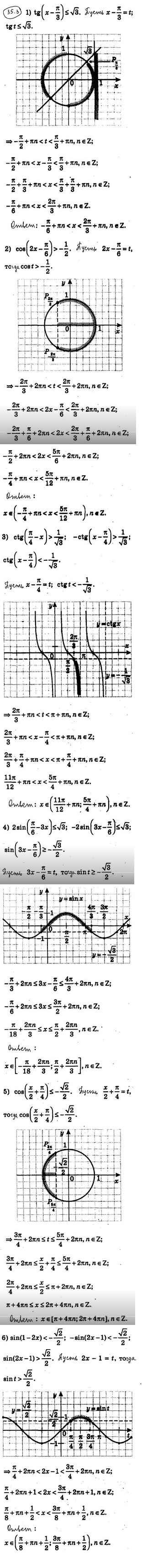 Готовая домашняя работа с ответами по Алгебре за 10 класс Мерзляк, Номировский, Поляков Учебник Алгоритм успеха Углубленный уровень Вентана-граф 2019 ФГОС - §35. Тригонометрические неравенства 35.3