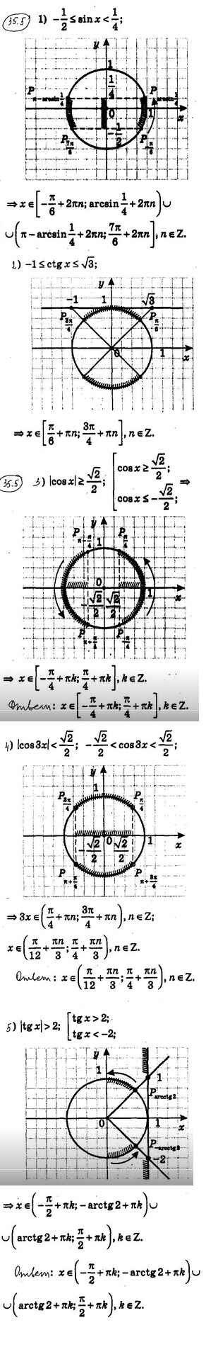 Готовая домашняя работа с ответами по Алгебре за 10 класс Мерзляк, Номировский, Поляков Учебник Алгоритм успеха Углубленный уровень Вентана-граф 2019 ФГОС - §35. Тригонометрические неравенства 35.5