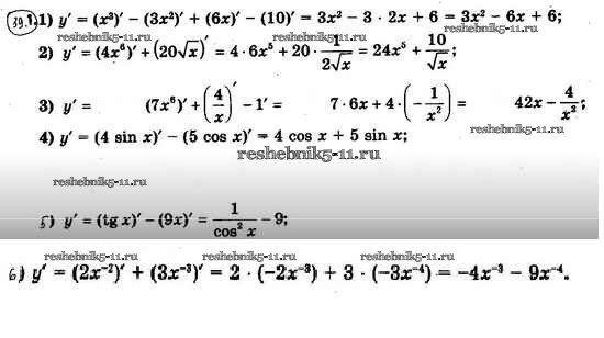 Готовая домашняя работа с ответами по Алгебре за 10 класс Мерзляк, Номировский, Поляков Учебник Алгоритм успеха Углубленный уровень Вентана-граф 2019 ФГОС - §39. Правила вычисления производных 39.1