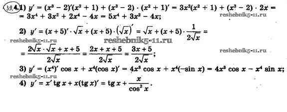 Готовая домашняя работа с ответами по Алгебре за 10 класс Мерзляк, Номировский, Поляков Учебник Алгоритм успеха Углубленный уровень Вентана-граф 2019 ФГОС - §39. Правила вычисления производных 39.4