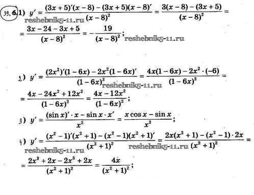 Готовая домашняя работа с ответами по Алгебре за 10 класс Мерзляк, Номировский, Поляков Учебник Алгоритм успеха Углубленный уровень Вентана-граф 2019 ФГОС - §39. Правила вычисления производных 39.6