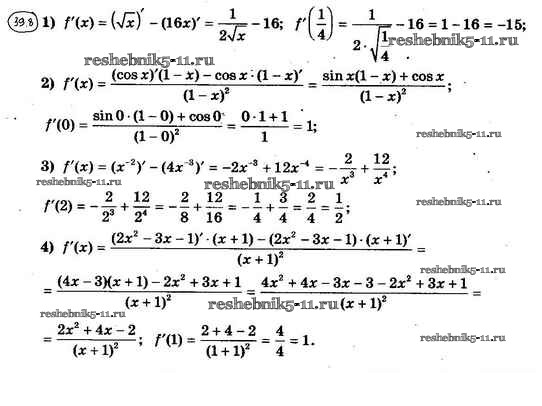 Готовая домашняя работа с ответами по Алгебре за 10 класс Мерзляк, Номировский, Поляков Учебник Алгоритм успеха Углубленный уровень Вентана-граф 2019 ФГОС - §39. Правила вычисления производных 39.8