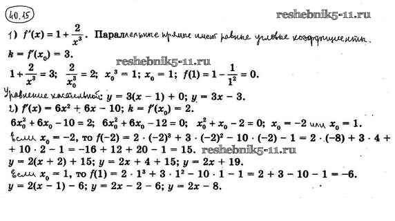 Готовая домашняя работа с ответами по Алгебре за 10 класс Мерзляк, Номировский, Поляков Учебник Алгоритм успеха Углубленный уровень Вентана-граф 2019 ФГОС - §40. Уравнение касательной 40.15