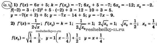 Готовая домашняя работа с ответами по Алгебре за 10 класс Мерзляк, Номировский, Поляков Учебник Алгоритм успеха Углубленный уровень Вентана-граф 2019 ФГОС - §40. Уравнение касательной 40.16