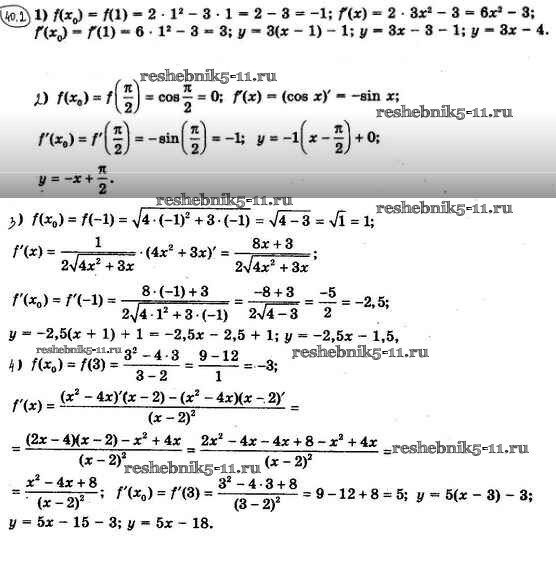 Готовая домашняя работа с ответами по Алгебре за 10 класс Мерзляк, Номировский, Поляков Учебник Алгоритм успеха Углубленный уровень Вентана-граф 2019 ФГОС - §40. Уравнение касательной 40.2