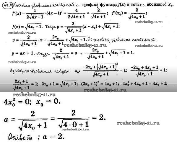 Готовая домашняя работа с ответами по Алгебре за 10 класс Мерзляк, Номировский, Поляков Учебник Алгоритм успеха Углубленный уровень Вентана-граф 2019 ФГОС - §40. Уравнение касательной 40.29