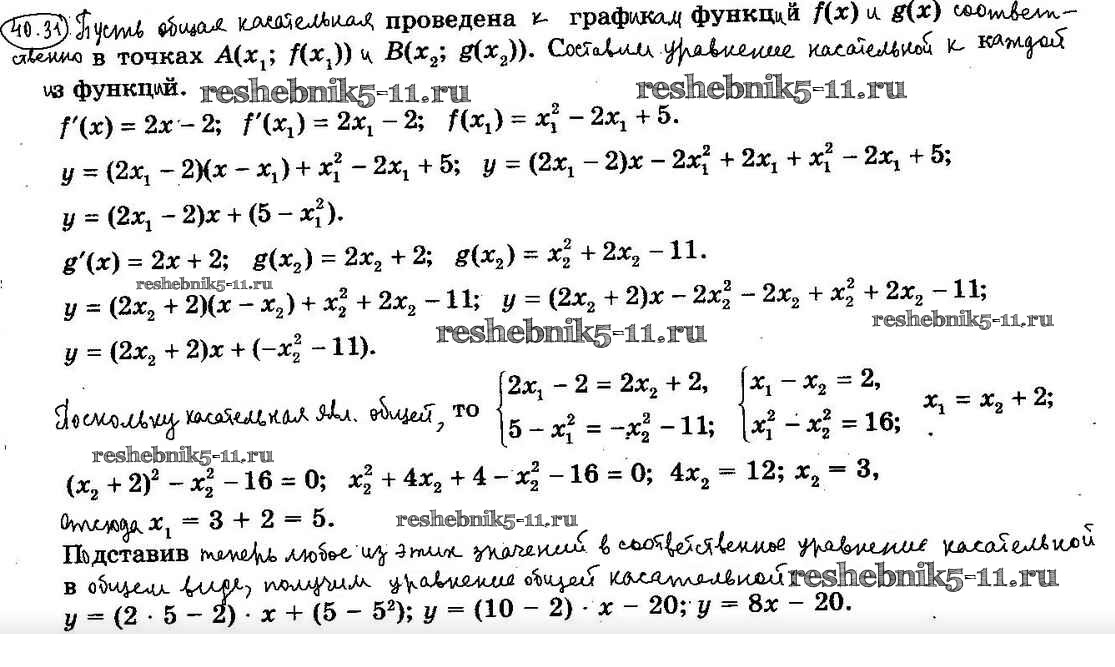 Готовая домашняя работа с ответами по Алгебре за 10 класс Мерзляк, Номировский, Поляков Учебник Алгоритм успеха Углубленный уровень Вентана-граф 2019 ФГОС - §40. Уравнение касательной 40.31