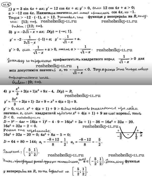 Готовая домашняя работа с ответами по Алгебре за 10 класс Мерзляк, Номировский, Поляков Учебник Алгоритм успеха Углубленный уровень Вентана-граф 2019 ФГОС - §41. Признаки возрастания и убывания функции 41.18
