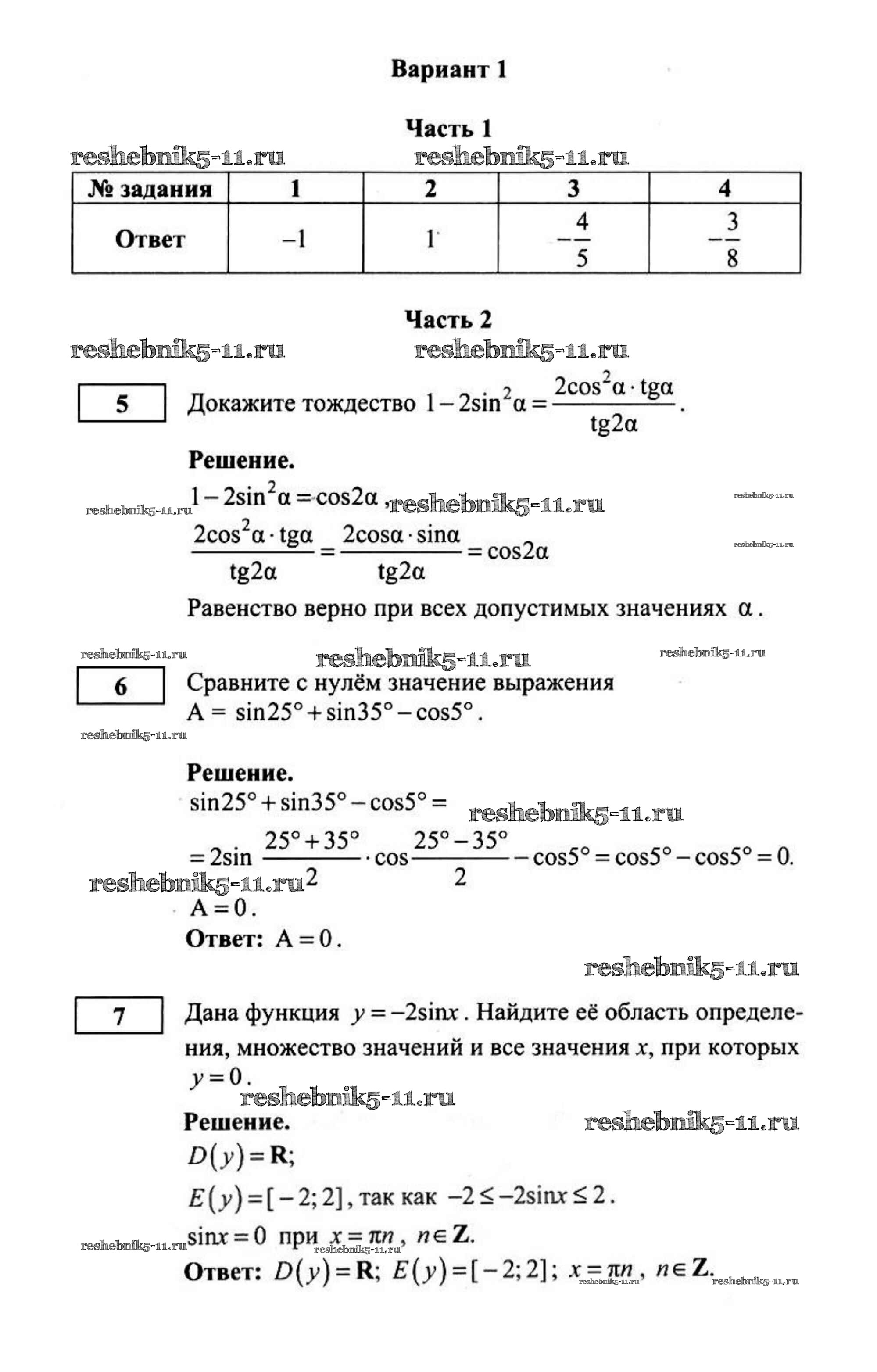 Готовая домашняя работа с ответами по Алгебре за 10 класс Дудницын, Семёнов Контрольные работы Интеллект, Центр 2013 - Контрольная работа 2 1