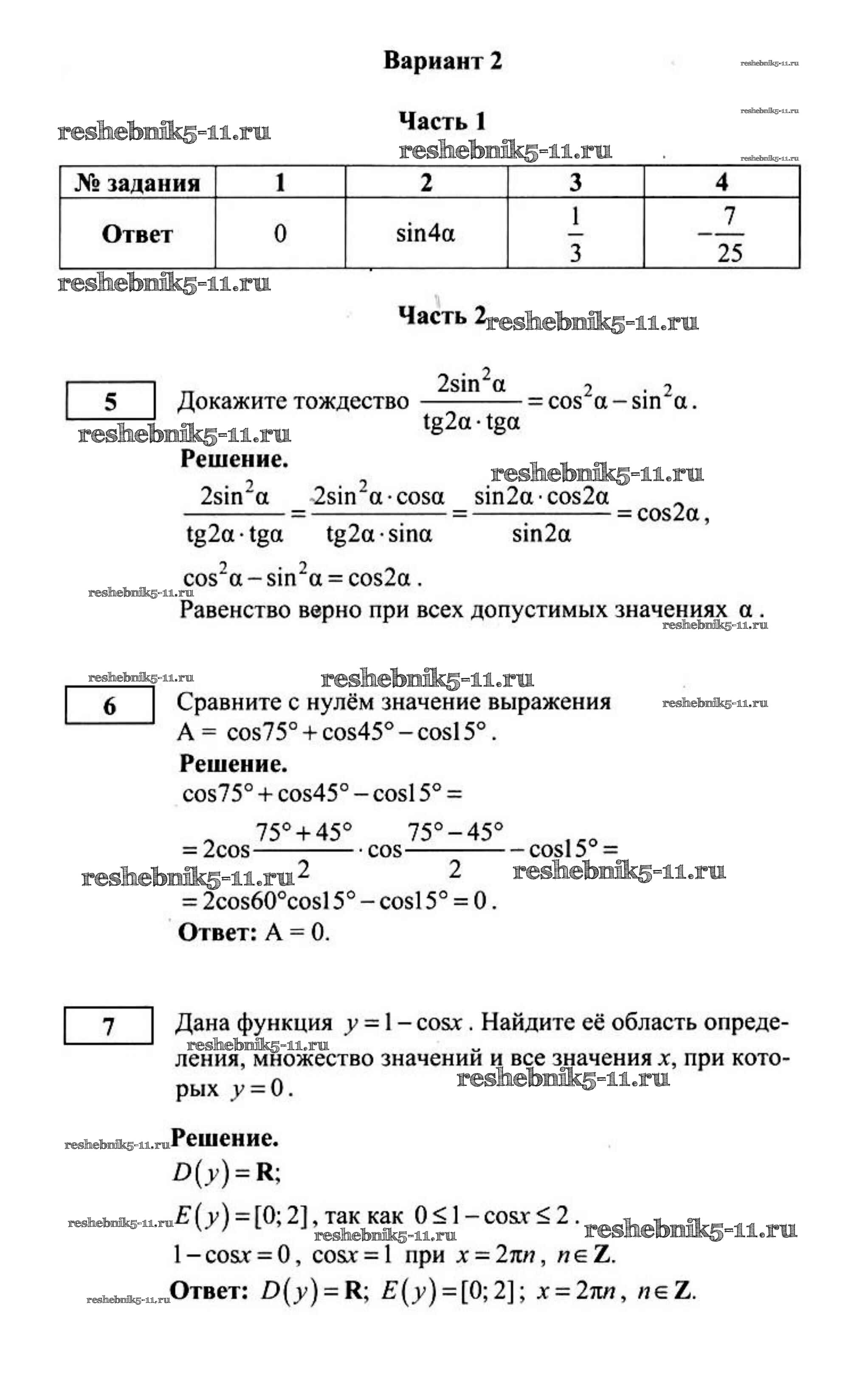 Готовая домашняя работа с ответами по Алгебре за 10 класс Дудницын, Семёнов Контрольные работы Интеллект, Центр 2013 - Контрольная работа 2 2