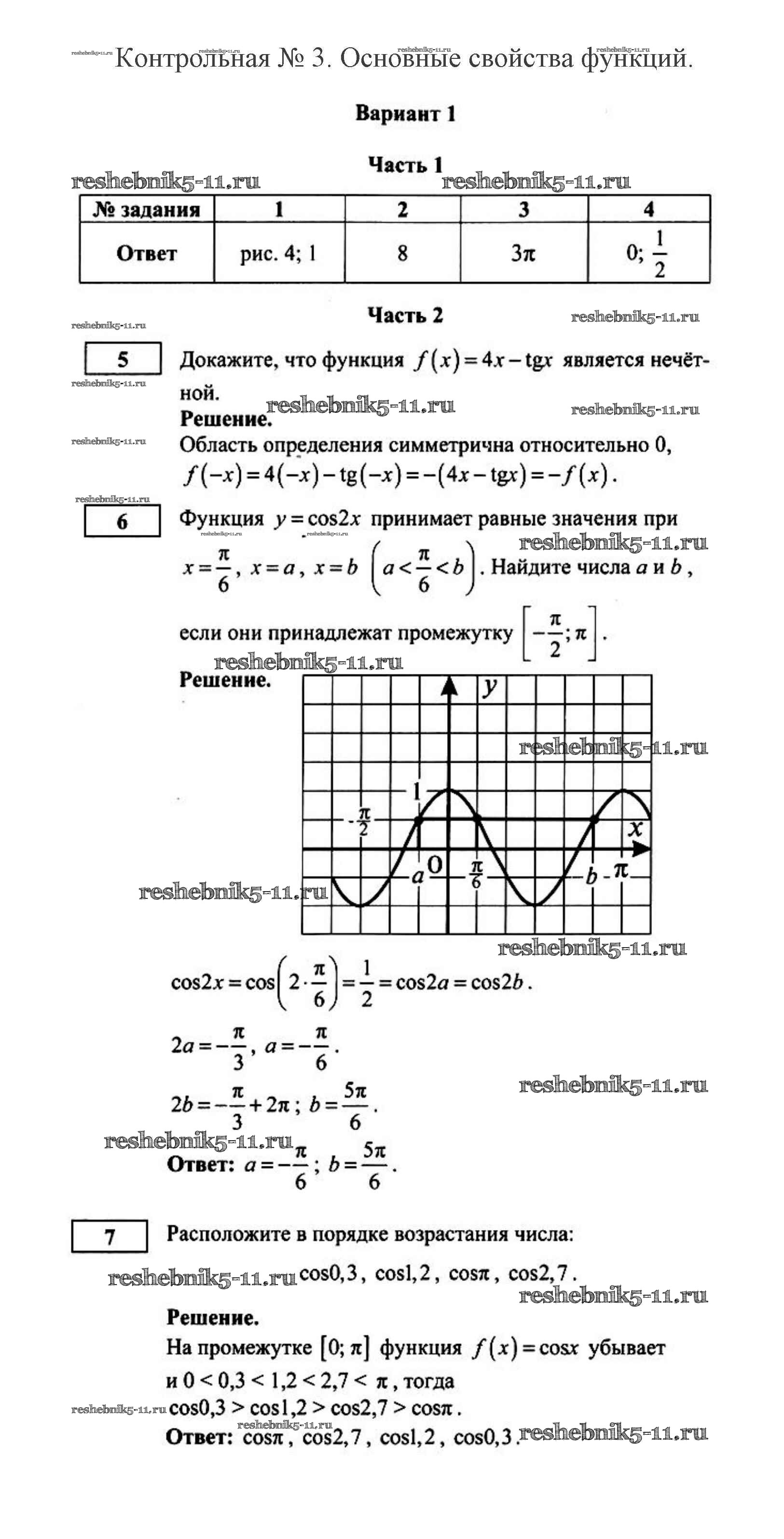 Готовая домашняя работа с ответами по Алгебре за 10 класс Дудницын, Семёнов Контрольные работы Интеллект, Центр 2013 - Контрольная работа 3 1