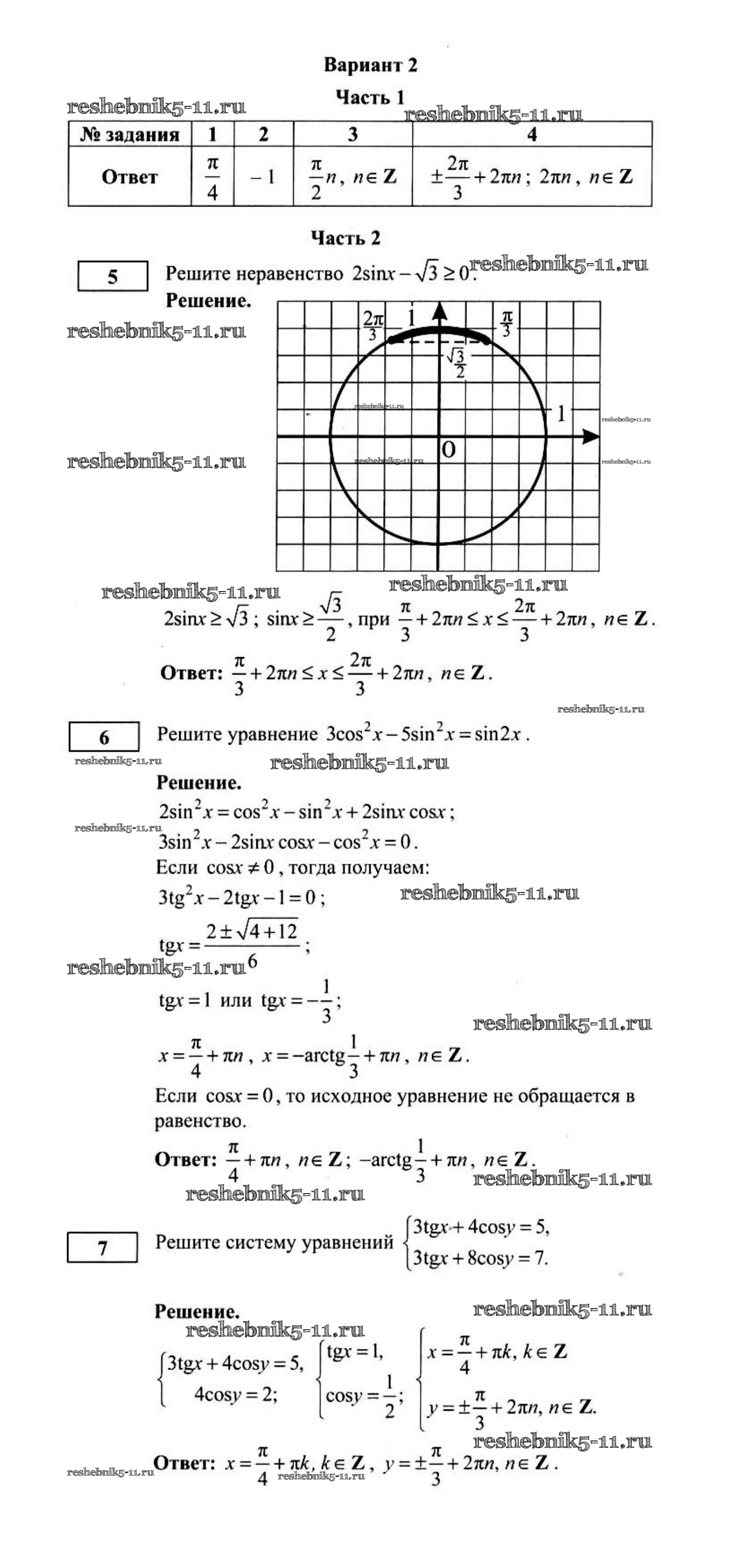 Готовая домашняя работа с ответами по Алгебре за 10 класс Дудницын, Семёнов Контрольные работы Интеллект, Центр 2013 - Контрольная работа 4 2
