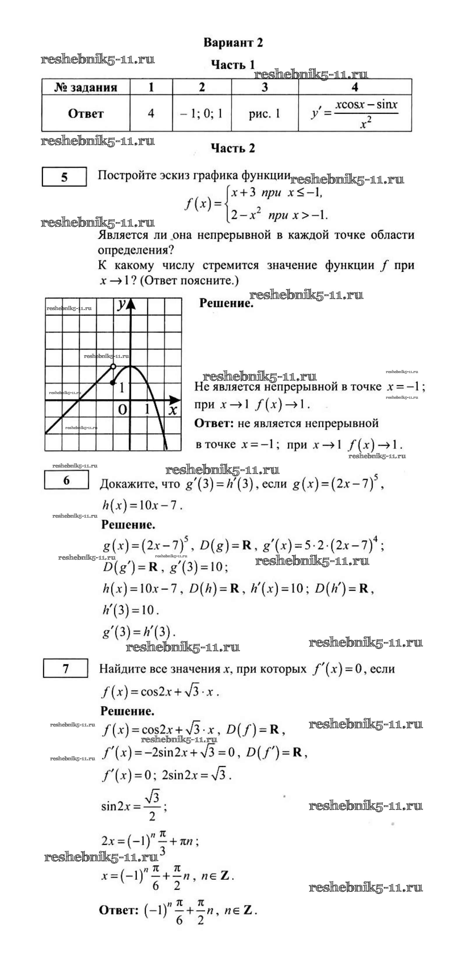 Готовая домашняя работа с ответами по Алгебре за 10 класс Дудницын, Семёнов Контрольные работы Интеллект, Центр 2013 - Контрольная работа 5 2