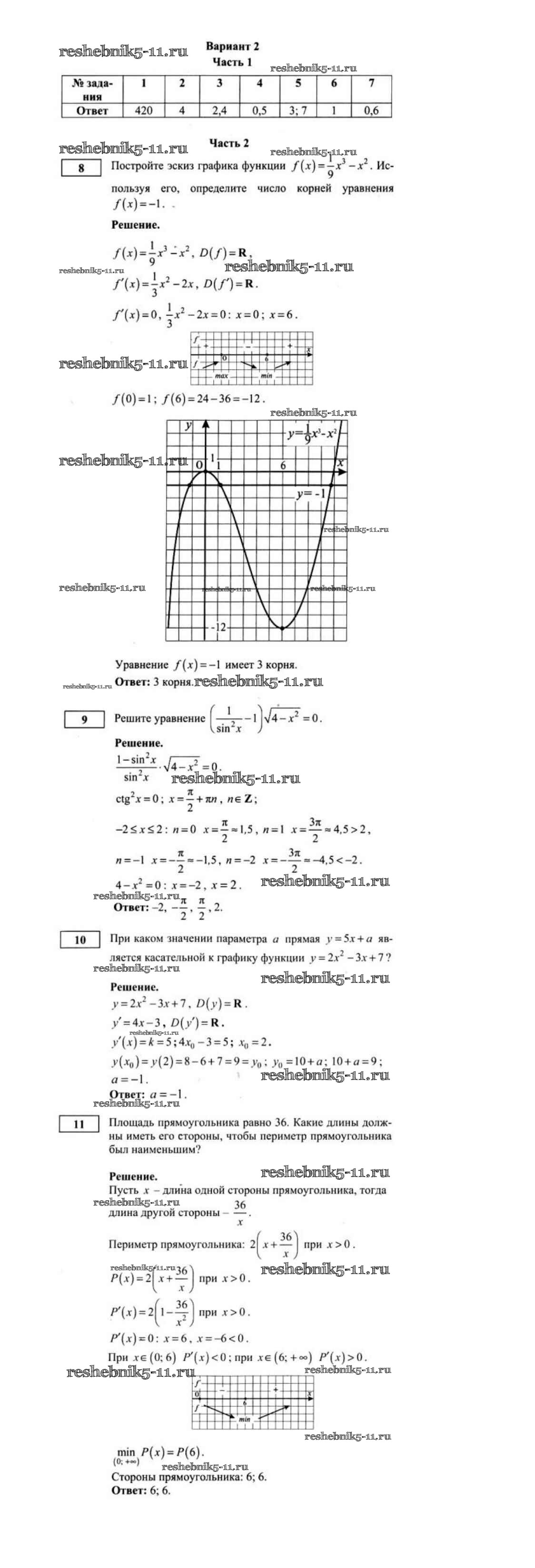 Готовая домашняя работа с ответами по Алгебре за 10 класс Дудницын, Семёнов Контрольные работы Интеллект, Центр 2013 - Контрольная работа 8 2
