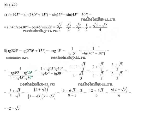 Готовая домашняя работа с ответами по Алгебре за 10 класс Арефьева, Пирютко Учебник Народная асвета 2019 - Глава 1 1.429