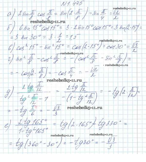Готовая домашняя работа с ответами по Алгебре за 10 класс Арефьева, Пирютко Учебник Народная асвета 2019 - Глава 1 1.475