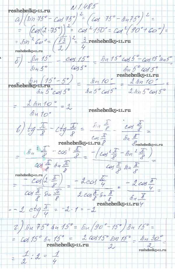 Готовая домашняя работа с ответами по Алгебре за 10 класс Арефьева, Пирютко Учебник Народная асвета 2019 - Глава 1 1.485
