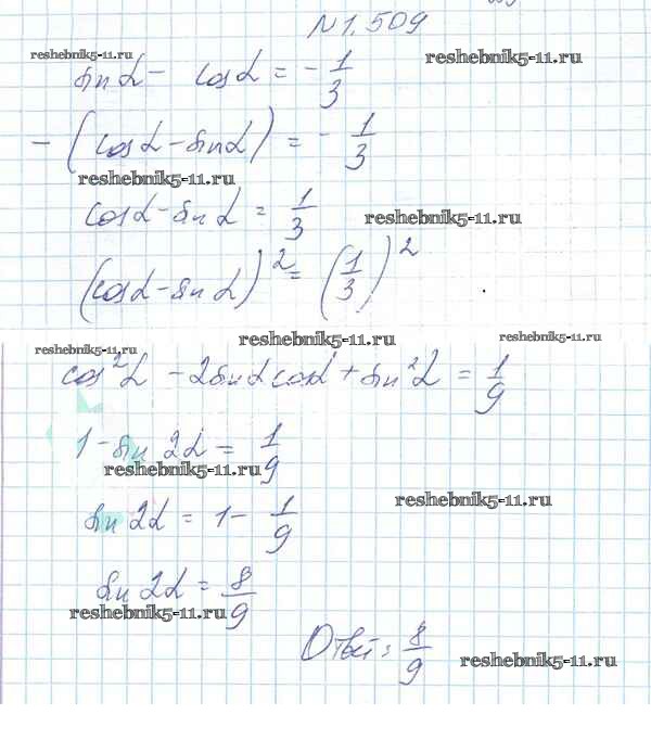 Готовая домашняя работа с ответами по Алгебре за 10 класс Арефьева, Пирютко Учебник Народная асвета 2019 - Глава 1 1.509