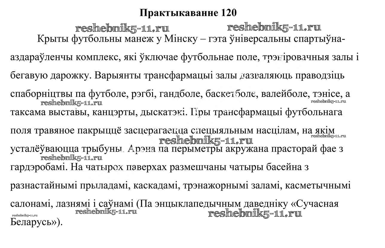 Готовая домашняя работа с ответами по Белорусскому языку за 10 класс Валочка, Васюковіч, Зелянко, Міхнёнак, Якуба Учебник Национальный институт образования 2016 ФГОС - Практыкаванні 120