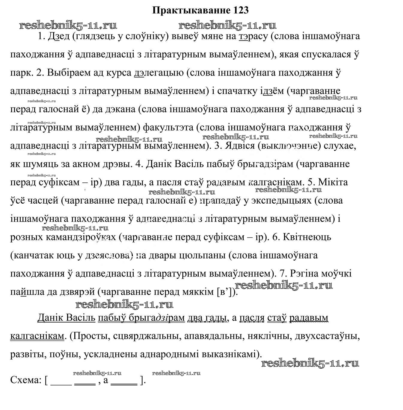 Готовая домашняя работа с ответами по Белорусскому языку за 10 класс Валочка, Васюковіч, Зелянко, Міхнёнак, Якуба Учебник Национальный институт образования 2016 ФГОС - Практыкаванні 123