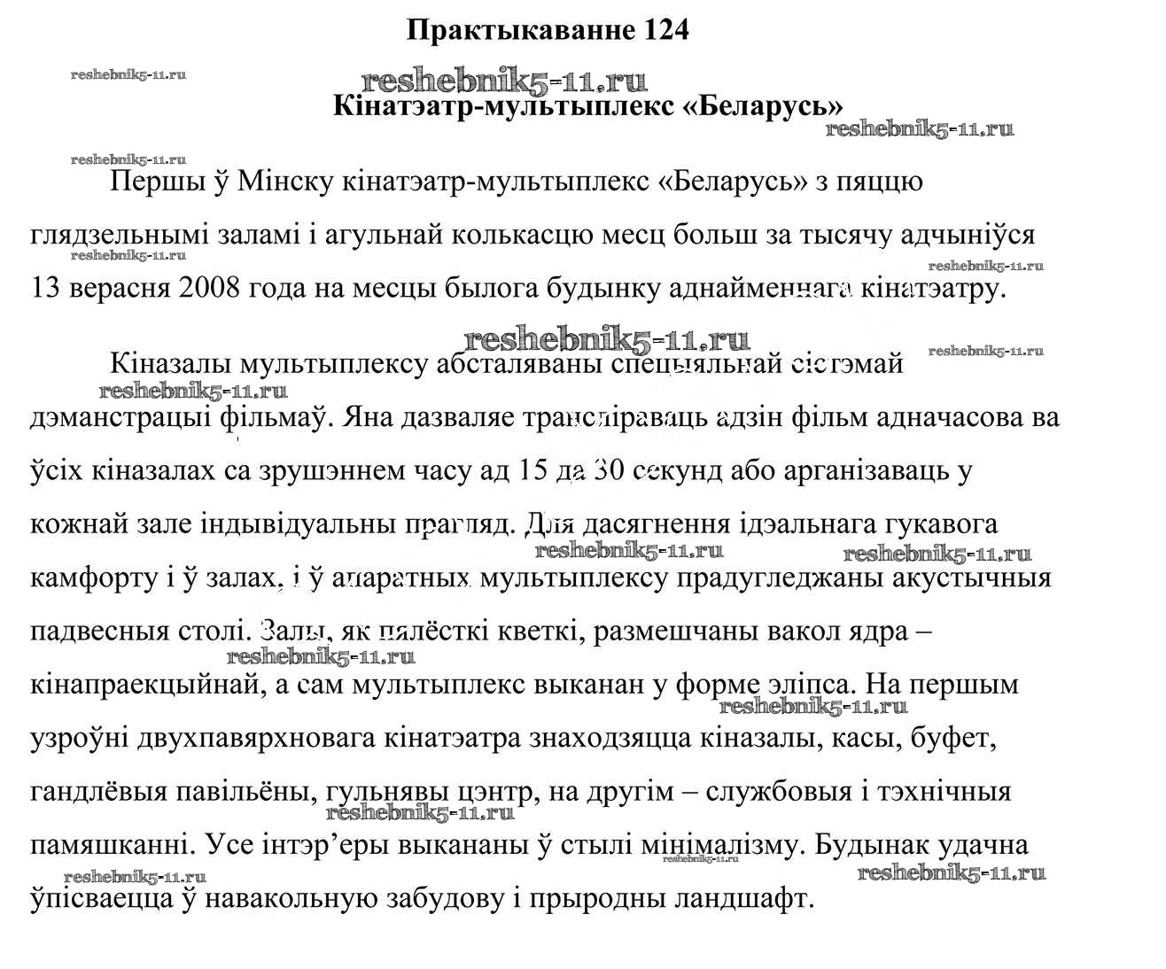Готовая домашняя работа с ответами по Белорусскому языку за 10 класс Валочка, Васюковіч, Зелянко, Міхнёнак, Якуба Учебник Национальный институт образования 2016 ФГОС - Практыкаванні 124