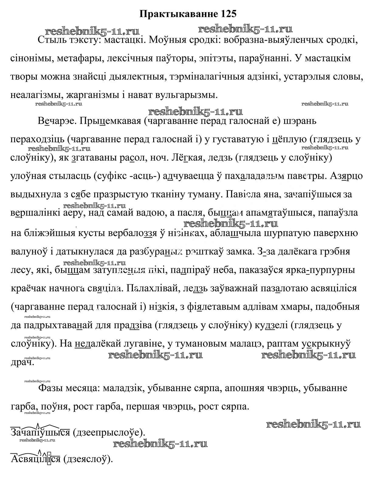 Готовая домашняя работа с ответами по Белорусскому языку за 10 класс Валочка, Васюковіч, Зелянко, Міхнёнак, Якуба Учебник Национальный институт образования 2016 ФГОС - Практыкаванні 125