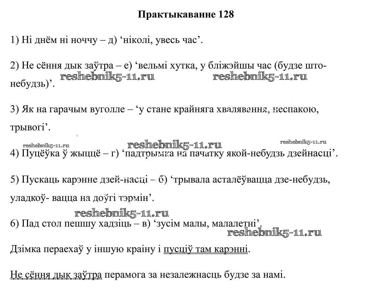 Готовая домашняя работа с ответами по Белорусскому языку за 10 класс Валочка, Васюковіч, Зелянко, Міхнёнак, Якуба Учебник Национальный институт образования 2016 ФГОС - Практыкаванні 128