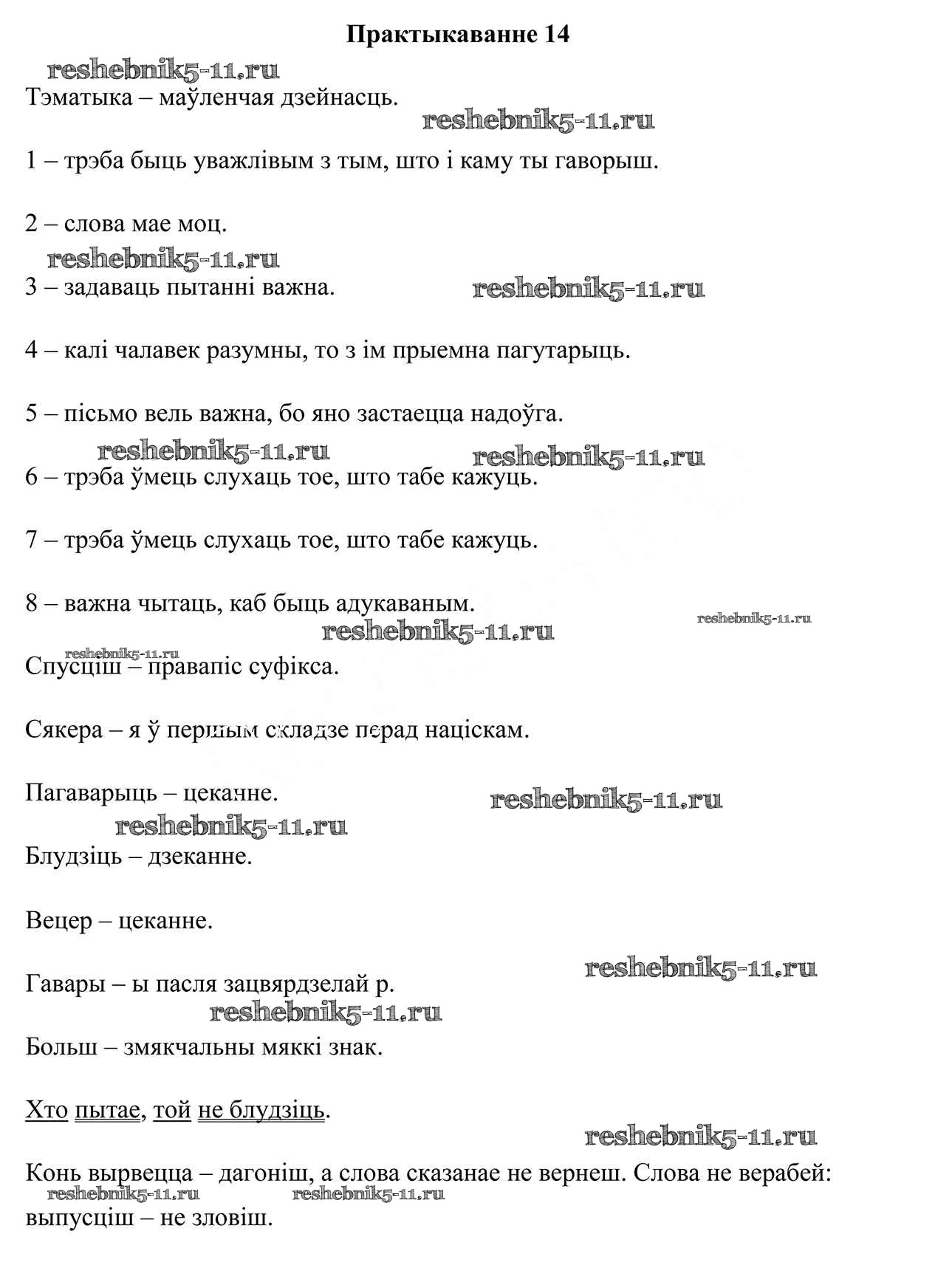 Готовая домашняя работа с ответами по Белорусскому языку за 10 класс Валочка, Васюковіч, Зелянко, Міхнёнак, Якуба Учебник Национальный институт образования 2016 ФГОС - Практыкаванні 14