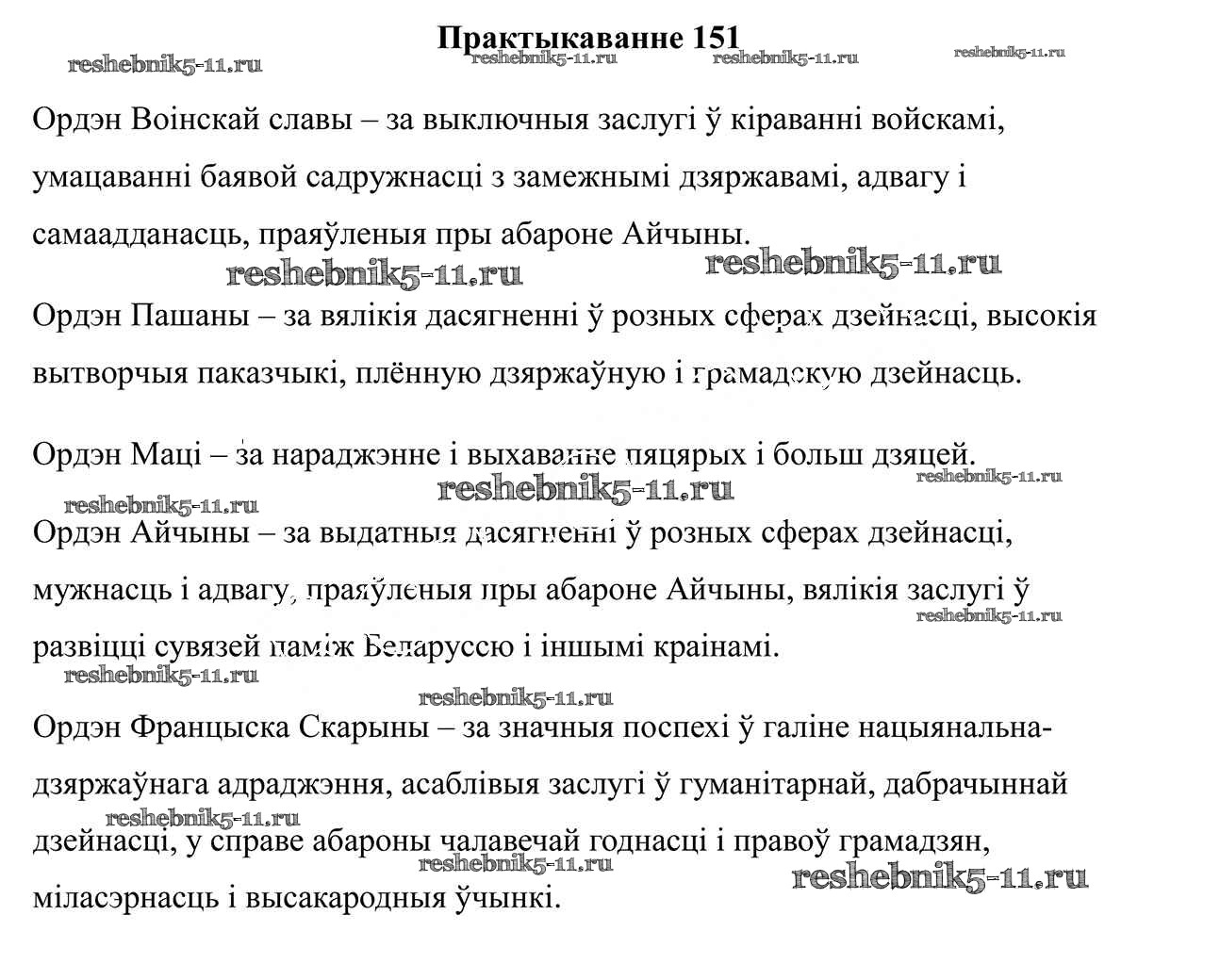 Готовая домашняя работа с ответами по Белорусскому языку за 10 класс Валочка, Васюковіч, Зелянко, Міхнёнак, Якуба Учебник Национальный институт образования 2016 ФГОС - Практыкаванні 151