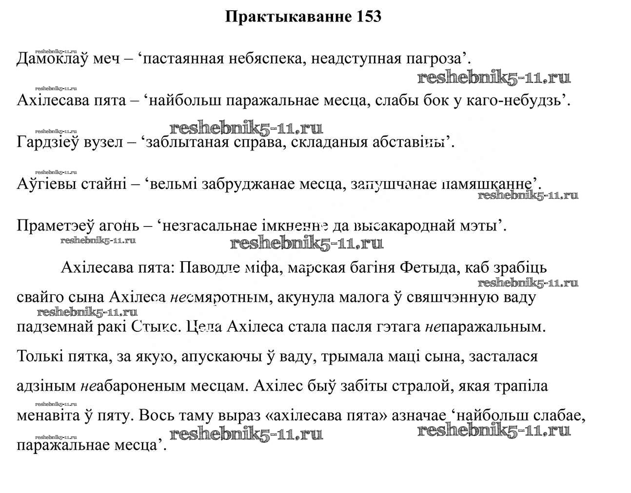 Готовая домашняя работа с ответами по Белорусскому языку за 10 класс Валочка, Васюковіч, Зелянко, Міхнёнак, Якуба Учебник Национальный институт образования 2016 ФГОС - Практыкаванні 153