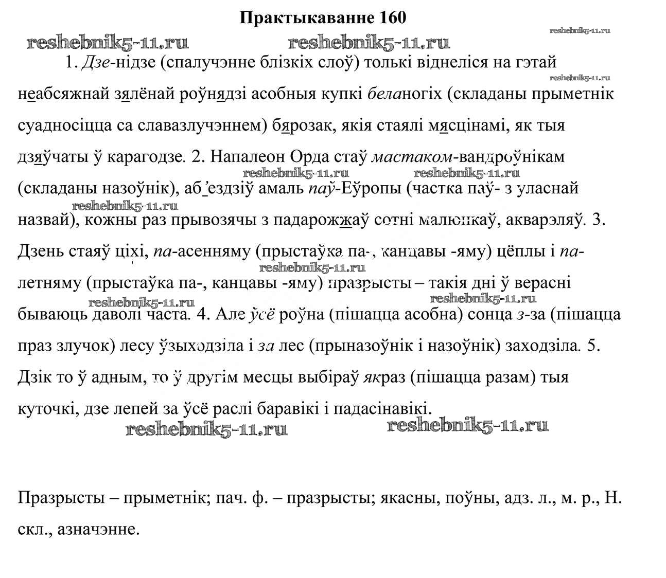 Готовая домашняя работа с ответами по Белорусскому языку за 10 класс Валочка, Васюковіч, Зелянко, Міхнёнак, Якуба Учебник Национальный институт образования 2016 ФГОС - Практыкаванні 160