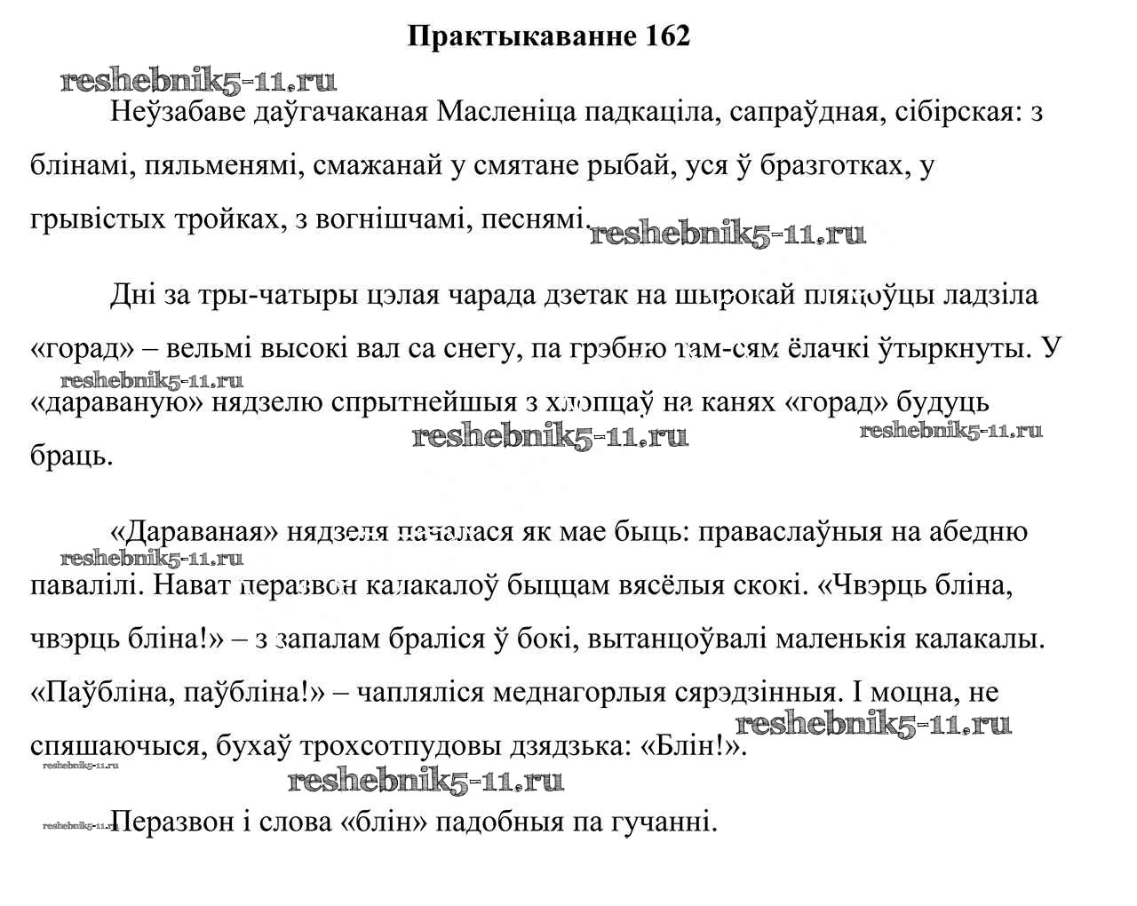 Готовая домашняя работа с ответами по Белорусскому языку за 10 класс Валочка, Васюковіч, Зелянко, Міхнёнак, Якуба Учебник Национальный институт образования 2016 ФГОС - Практыкаванні 162