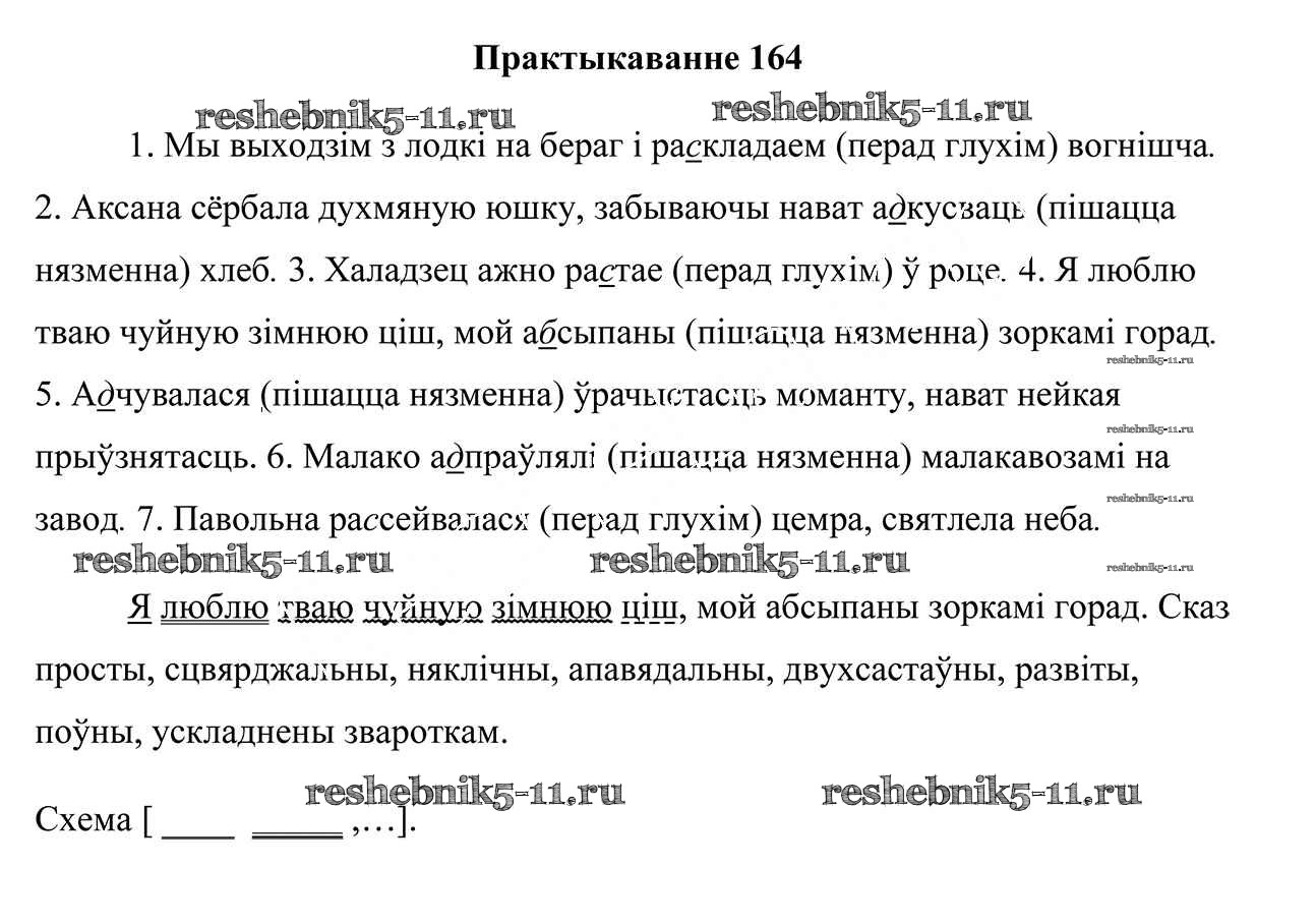 Готовая домашняя работа с ответами по Белорусскому языку за 10 класс Валочка, Васюковіч, Зелянко, Міхнёнак, Якуба Учебник Национальный институт образования 2016 ФГОС - Практыкаванні 164