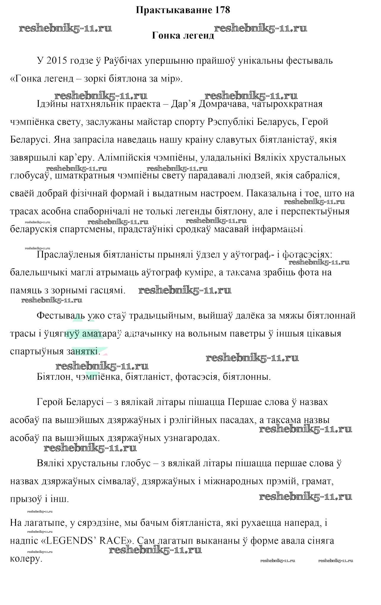 Готовая домашняя работа с ответами по Белорусскому языку за 10 класс Валочка, Васюковіч, Зелянко, Міхнёнак, Якуба Учебник Национальный институт образования 2016 ФГОС - Практыкаванні 178