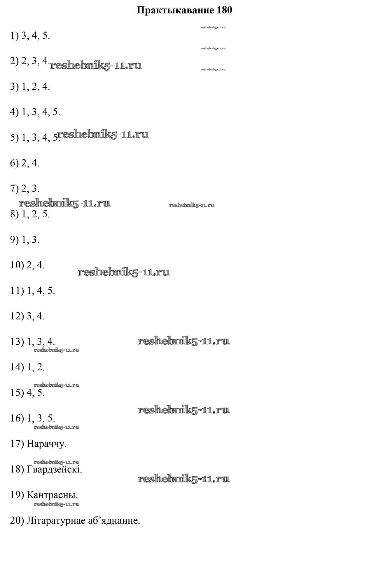 Готовая домашняя работа с ответами по Белорусскому языку за 10 класс Валочка, Васюковіч, Зелянко, Міхнёнак, Якуба Учебник Национальный институт образования 2016 ФГОС - Практыкаванні 180