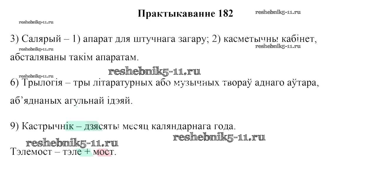Готовая домашняя работа с ответами по Белорусскому языку за 10 класс Валочка, Васюковіч, Зелянко, Міхнёнак, Якуба Учебник Национальный институт образования 2016 ФГОС - Практыкаванні 182