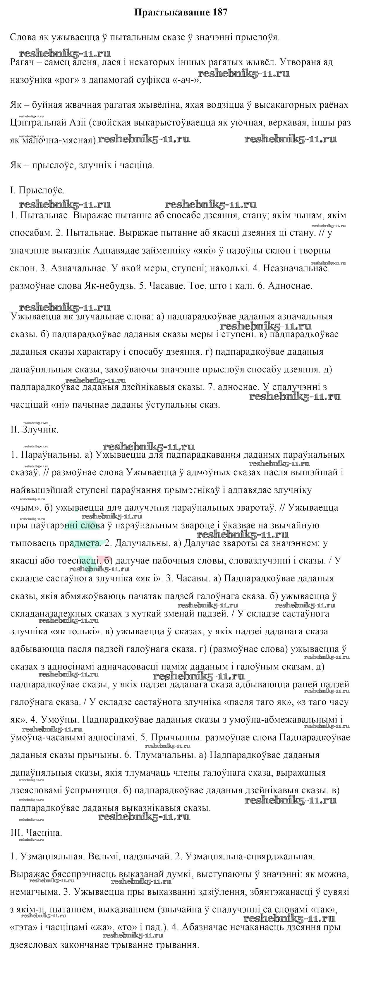 Готовая домашняя работа с ответами по Белорусскому языку за 10 класс Валочка, Васюковіч, Зелянко, Міхнёнак, Якуба Учебник Национальный институт образования 2016 ФГОС - Практыкаванні 187
