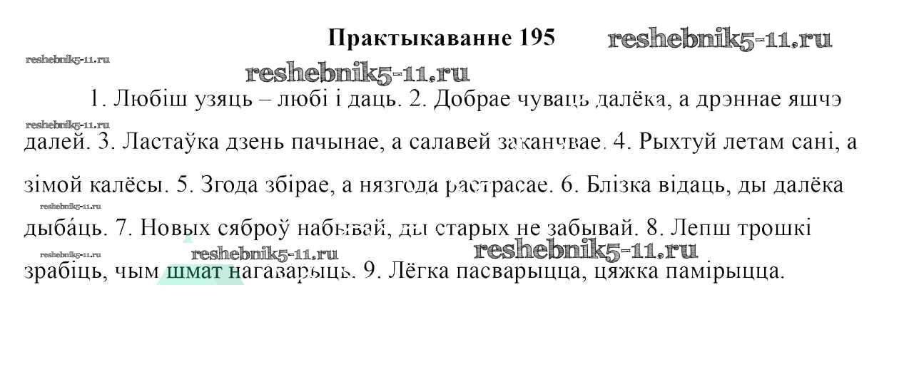 Готовая домашняя работа с ответами по Белорусскому языку за 10 класс Валочка, Васюковіч, Зелянко, Міхнёнак, Якуба Учебник Национальный институт образования 2016 ФГОС - Практыкаванні 195