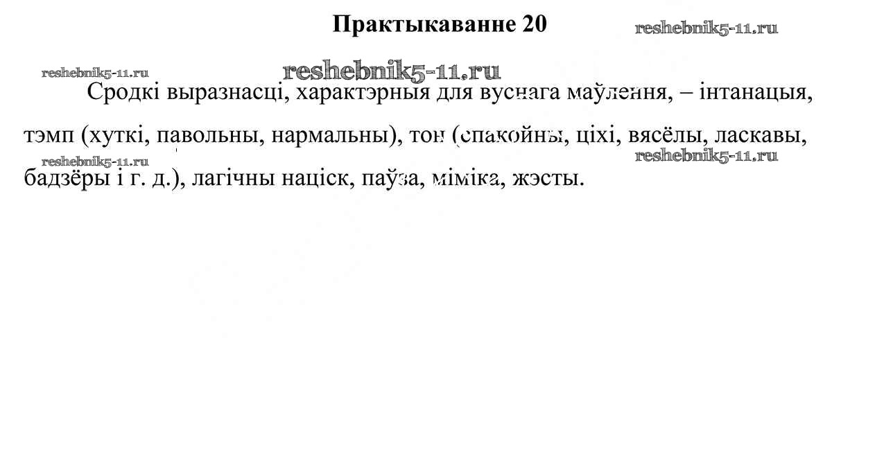 Готовая домашняя работа с ответами по Белорусскому языку за 10 класс Валочка, Васюковіч, Зелянко, Міхнёнак, Якуба Учебник Национальный институт образования 2016 ФГОС - Практыкаванні 20