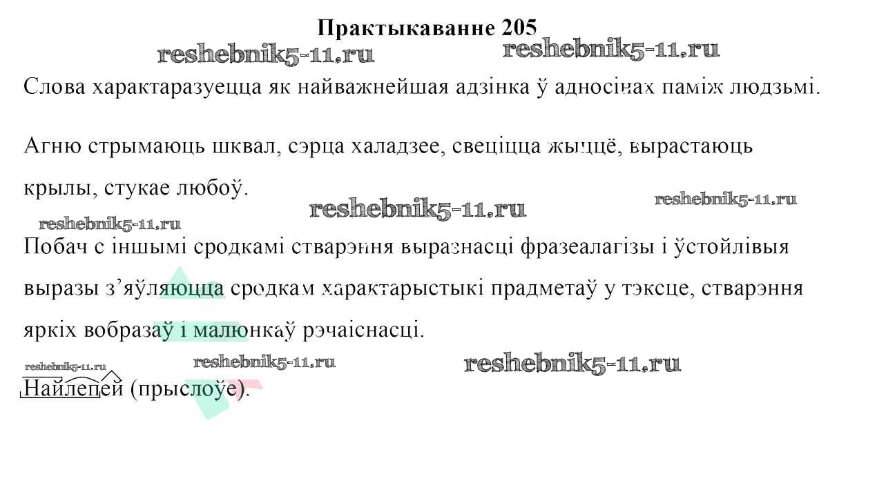 Готовая домашняя работа с ответами по Белорусскому языку за 10 класс Валочка, Васюковіч, Зелянко, Міхнёнак, Якуба Учебник Национальный институт образования 2016 ФГОС - Практыкаванні 205
