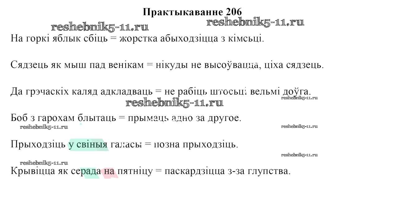 Готовая домашняя работа с ответами по Белорусскому языку за 10 класс Валочка, Васюковіч, Зелянко, Міхнёнак, Якуба Учебник Национальный институт образования 2016 ФГОС - Практыкаванні 206