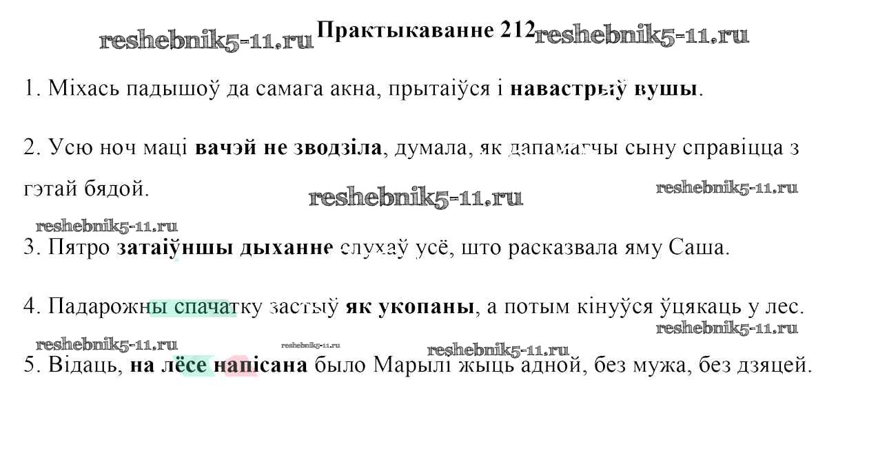 Готовая домашняя работа с ответами по Белорусскому языку за 10 класс Валочка, Васюковіч, Зелянко, Міхнёнак, Якуба Учебник Национальный институт образования 2016 ФГОС - Практыкаванні 212