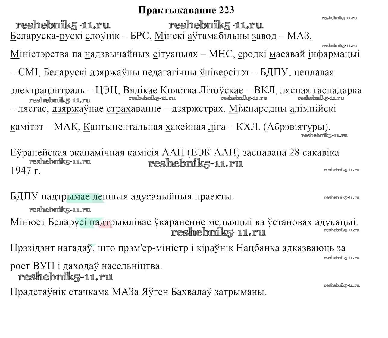 Готовая домашняя работа с ответами по Белорусскому языку за 10 класс Валочка, Васюковіч, Зелянко, Міхнёнак, Якуба Учебник Национальный институт образования 2016 ФГОС - Практыкаванні 223