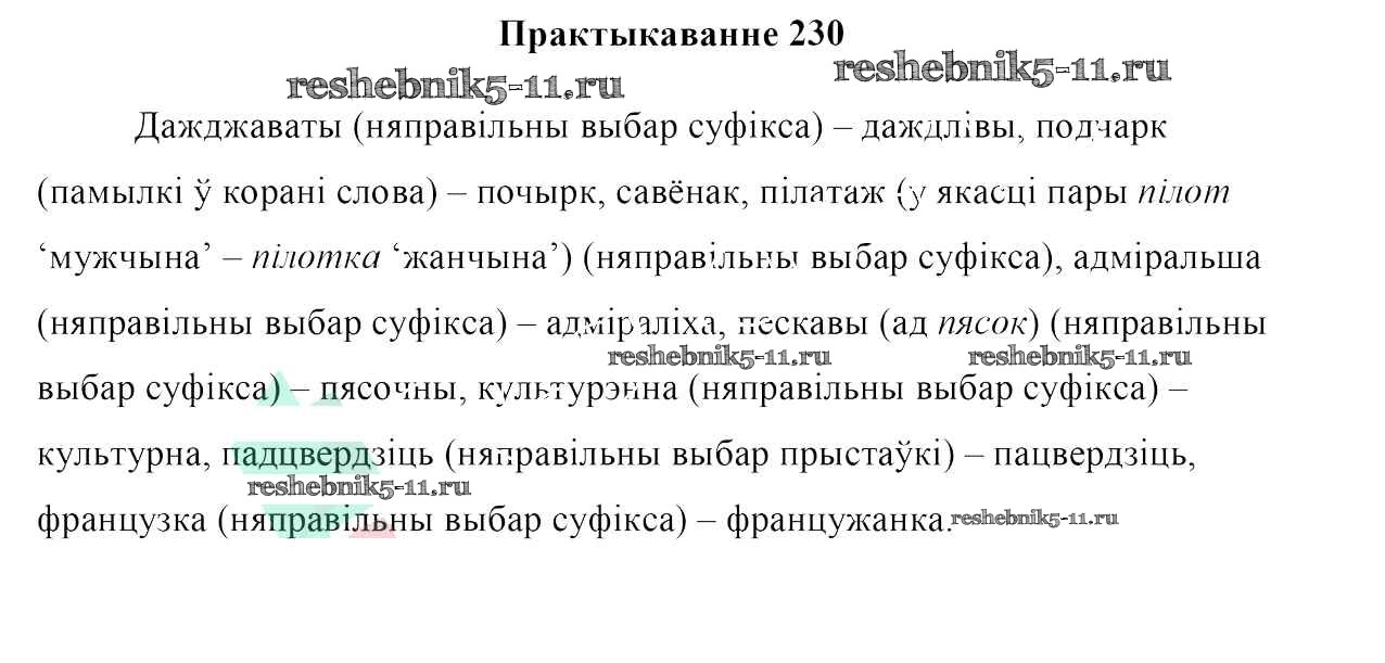 Готовая домашняя работа с ответами по Белорусскому языку за 10 класс Валочка, Васюковіч, Зелянко, Міхнёнак, Якуба Учебник Национальный институт образования 2016 ФГОС - Практыкаванні 230