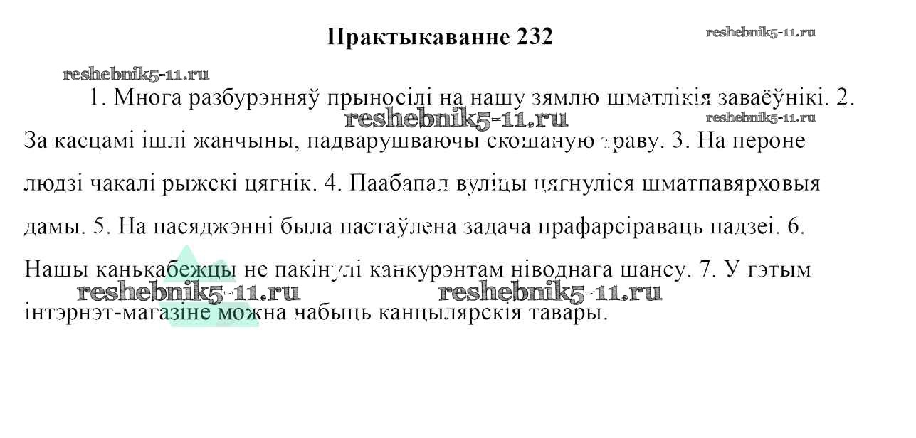 Готовая домашняя работа с ответами по Белорусскому языку за 10 класс Валочка, Васюковіч, Зелянко, Міхнёнак, Якуба Учебник Национальный институт образования 2016 ФГОС - Практыкаванні 232