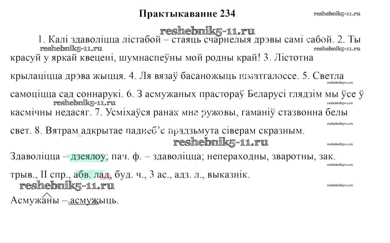 Готовая домашняя работа с ответами по Белорусскому языку за 10 класс Валочка, Васюковіч, Зелянко, Міхнёнак, Якуба Учебник Национальный институт образования 2016 ФГОС - Практыкаванні 234
