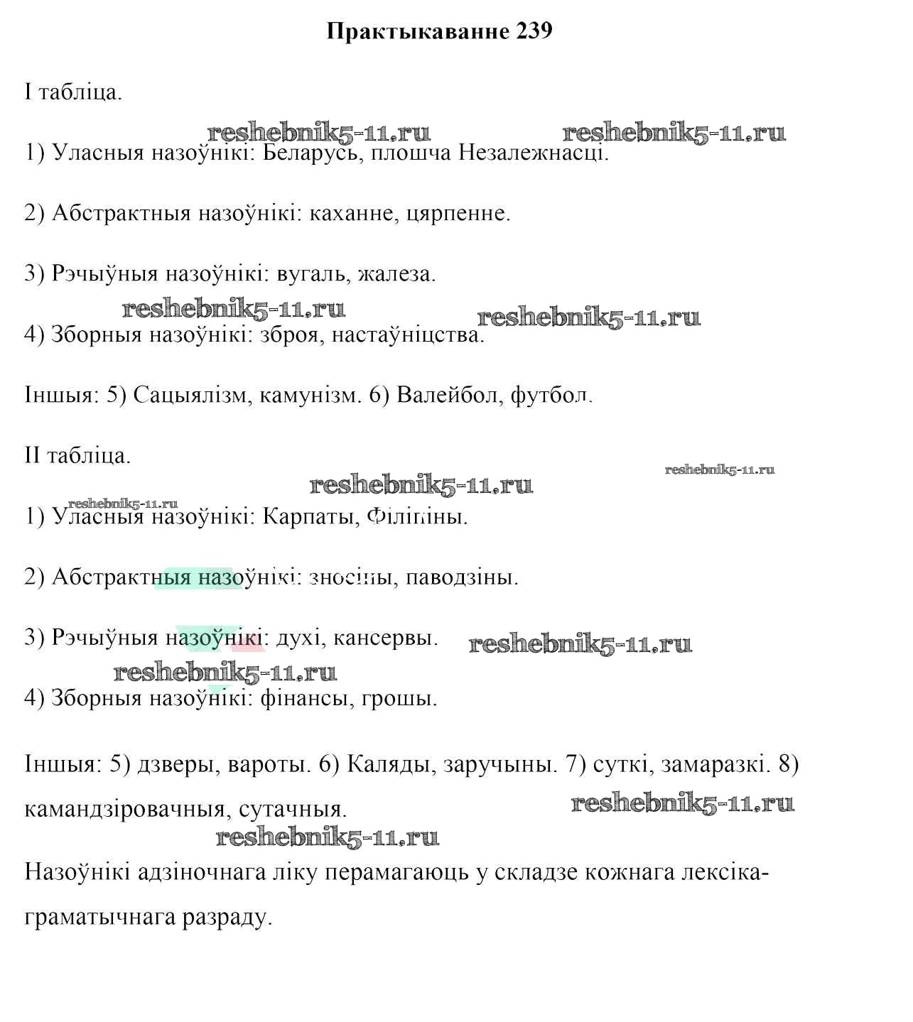Готовая домашняя работа с ответами по Белорусскому языку за 10 класс Валочка, Васюковіч, Зелянко, Міхнёнак, Якуба Учебник Национальный институт образования 2016 ФГОС - Практыкаванні 239