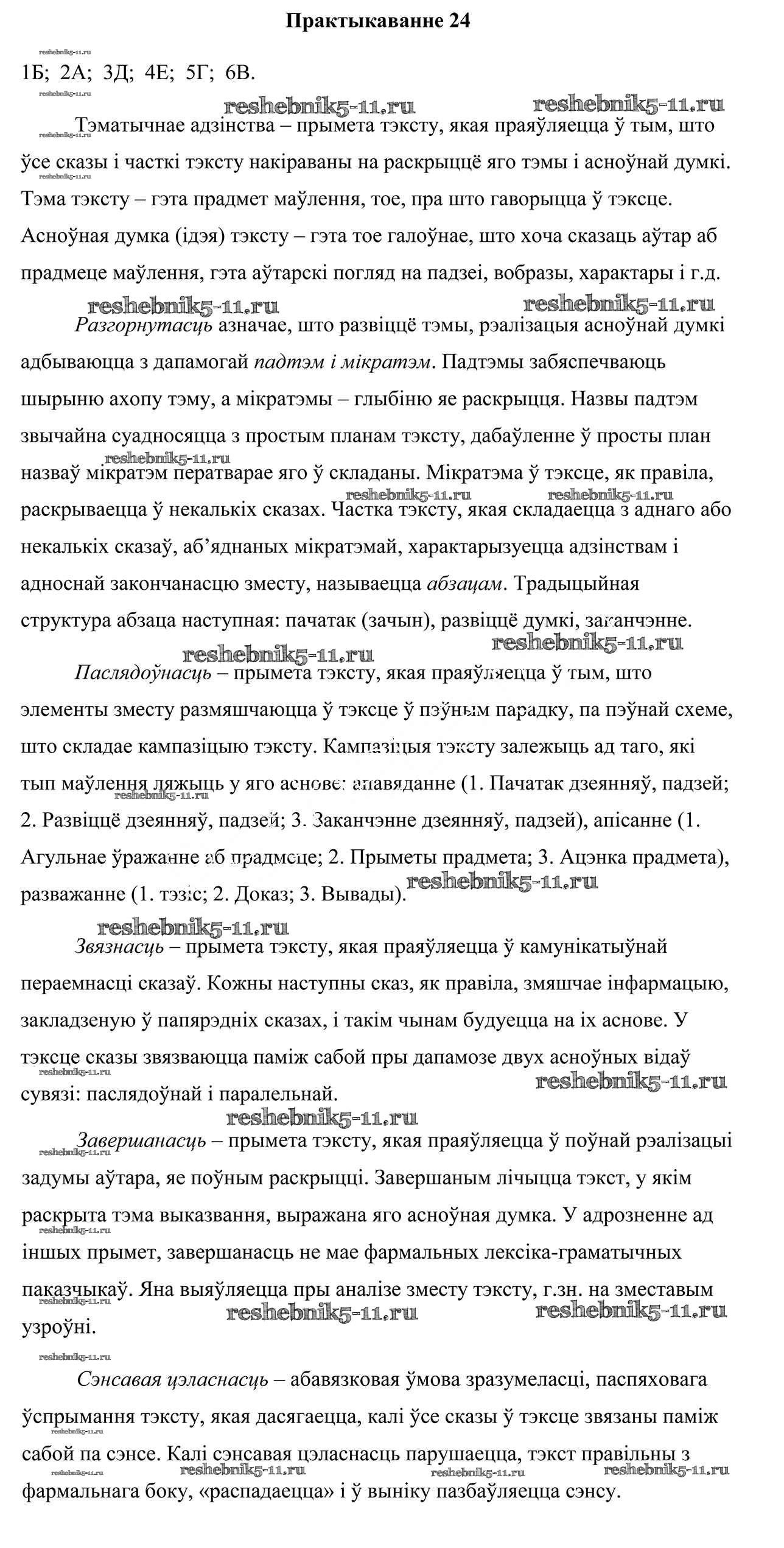 Готовая домашняя работа с ответами по Белорусскому языку за 10 класс Валочка, Васюковіч, Зелянко, Міхнёнак, Якуба Учебник Национальный институт образования 2016 ФГОС - Практыкаванні 24