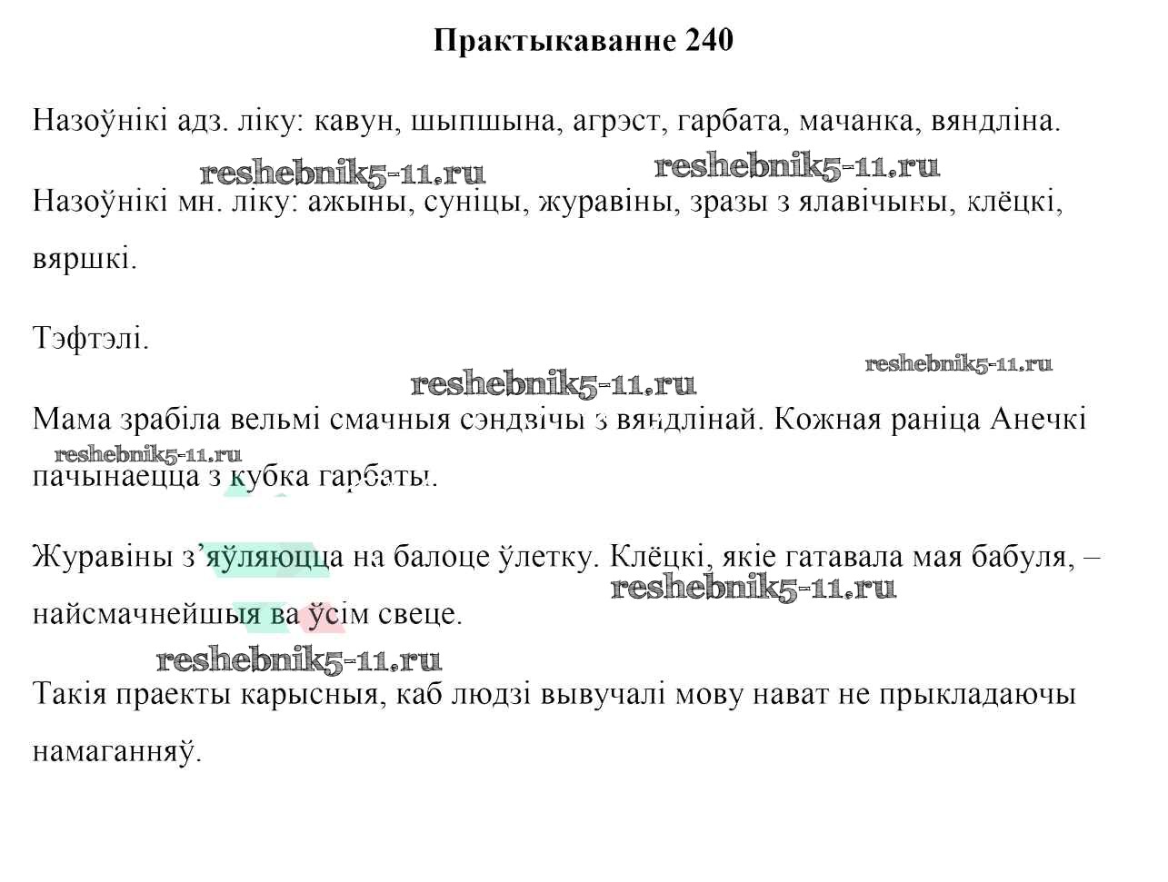 Готовая домашняя работа с ответами по Белорусскому языку за 10 класс Валочка, Васюковіч, Зелянко, Міхнёнак, Якуба Учебник Национальный институт образования 2016 ФГОС - Практыкаванні 240